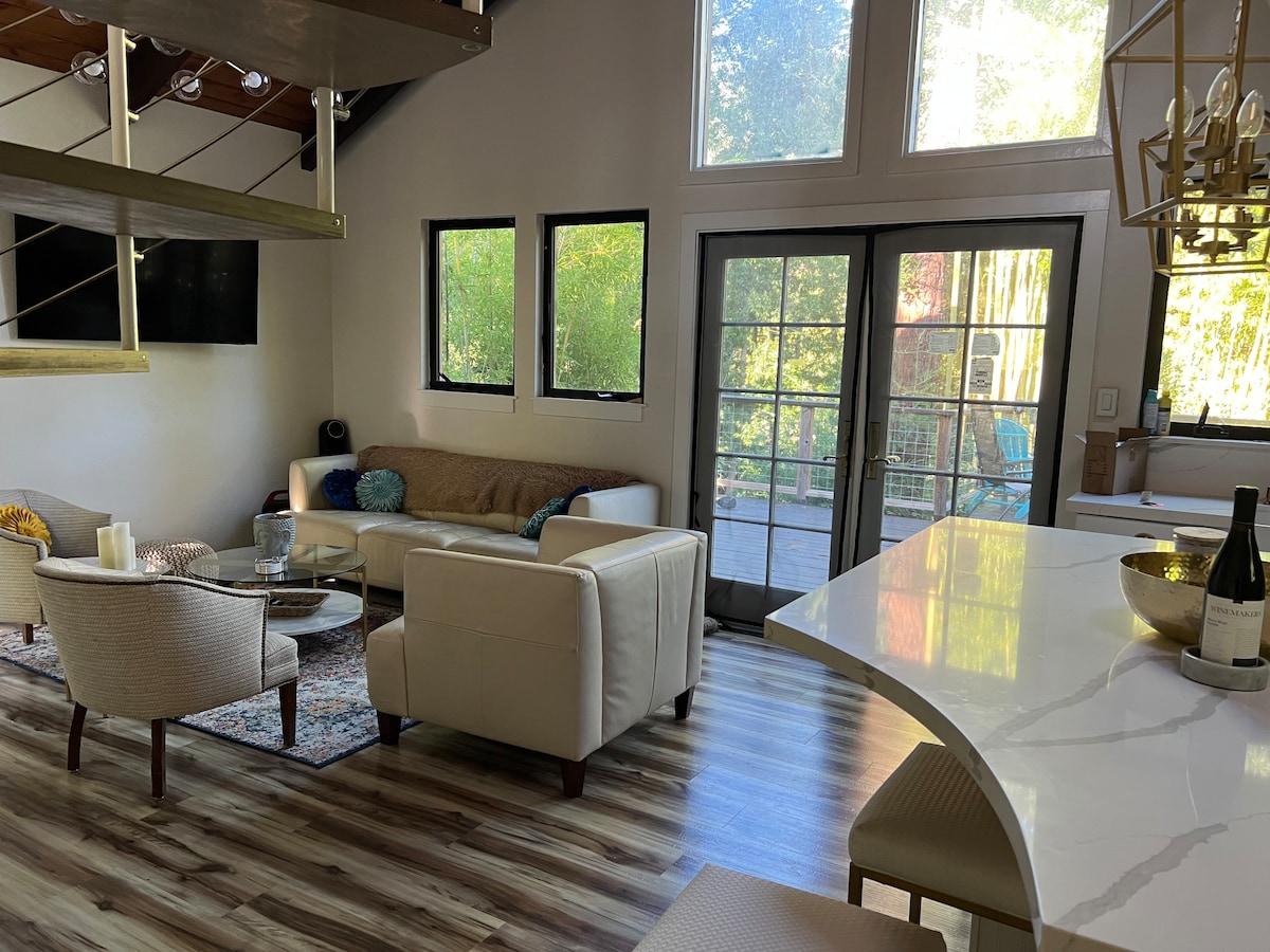 Ubicada entre majestuosas secuoyas, nuestra encantadora y elegante casa ofrece un refugio único para los huéspedes que buscan una escapada tranquila en plena naturaleza. Entra para descubrir un espacio habitable cuidadosamente diseñado, adornado con detalles de madera natural, una decoración elegante y una amplia luz natural que fluye a través de las ventanas. Ya sea que estés buscando una escapada romántica, unas vacaciones familiares o un refugio de fin de semana, nuestro hogar ofrece la combinación perfecta de comodidad, conveniencia y belleza natural. A 4 minutos del centro de la ciudad.
