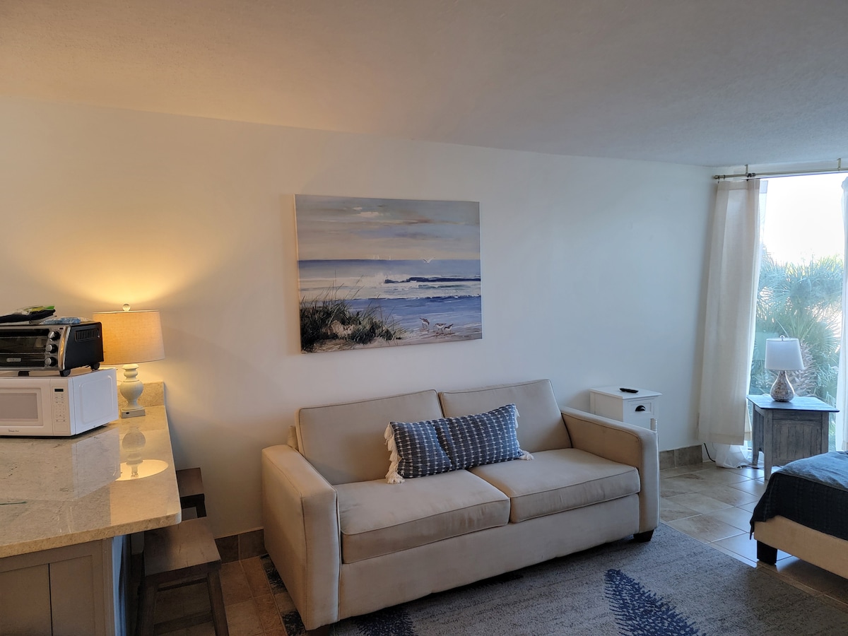 Te sientes como en casa tan pronto como entras en este hermoso y decorado apartamento de 480 pies cuadrados que duerme cuatro. Cada centímetro de este apartamento ha sido diseñado para ser un espacio utilizable, con una cocina de tamaño completo y 2 camas tamaño queen nuevas también con un sofá de cuero nuevo. Puedes disfrutar de tus noches sentado en sillas Adirondack en tu propia terraza privada con hermosas vistas o caminar 30 pies hasta la playa. Esta unidad también está a pocos pasos de la próxima apertura de Tootsie's. Debes tener 21 años para poder reservar.
