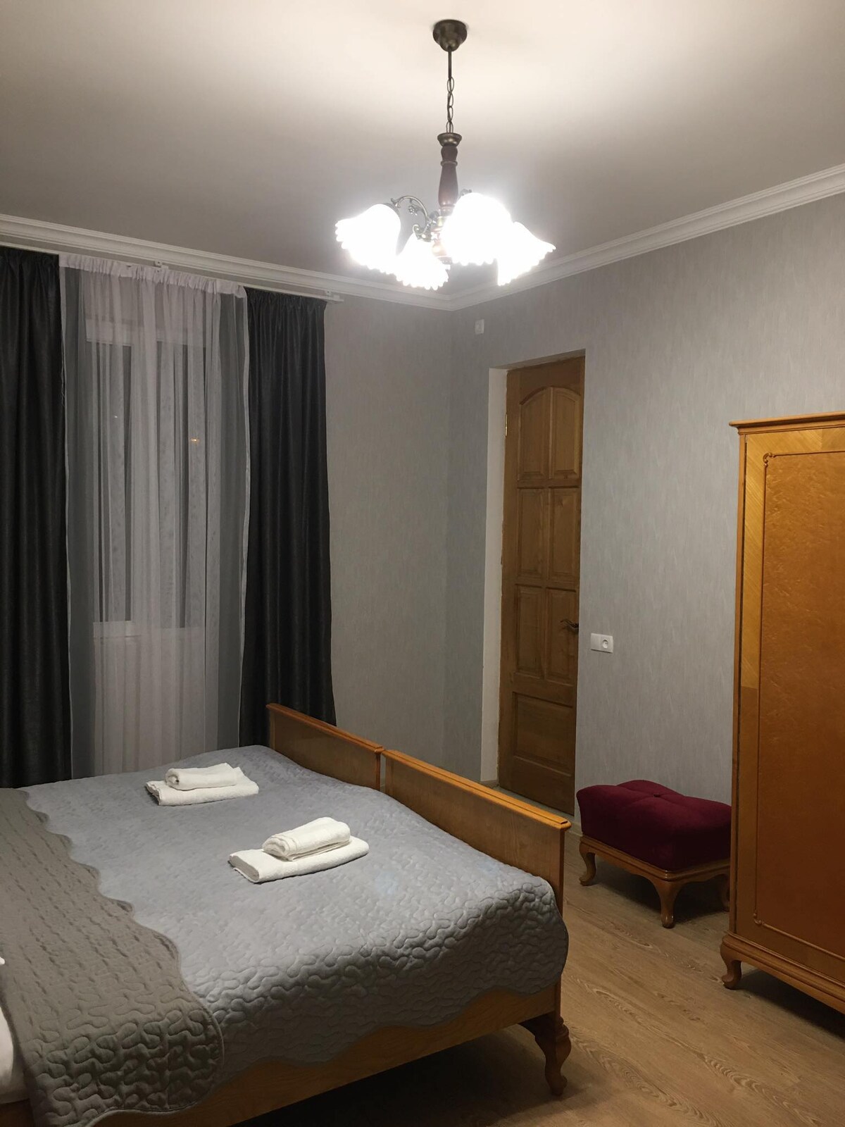 Esta casa está ubicada en el centro de Telavi, una ubicación ideal para los huéspedes de la ciudad. Todo a pocos pasos. No es necesario gastar dinero extra en un taxi para llegar al centro de la ciudad. La cabaña cuenta con todo lo que necesitas para tu estancia cómoda, desde una cómoda cama doble hasta zapatillas desechables. ¡Lugar único, para una experiencia única!