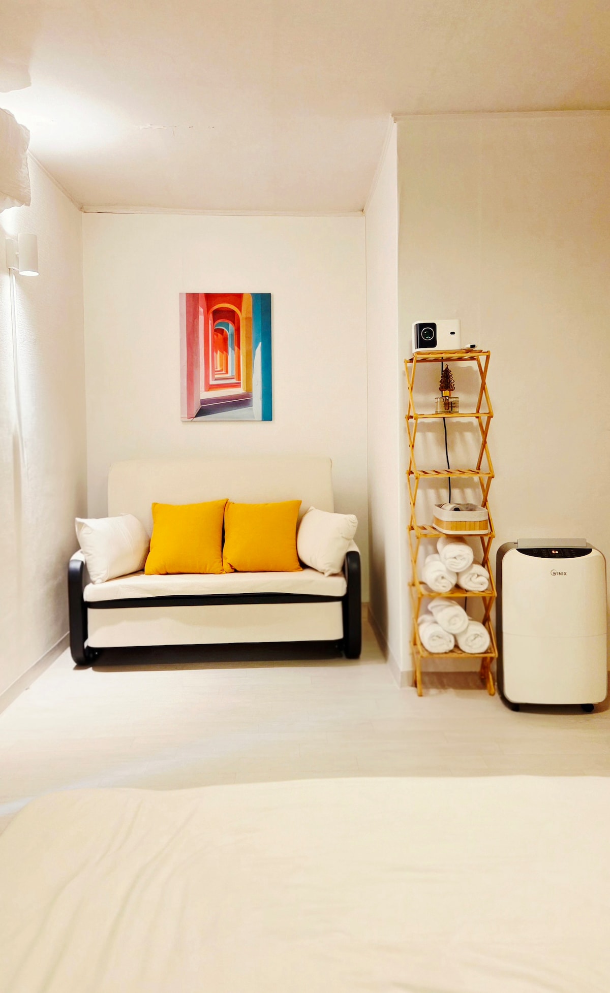 Las "COSAS NORMALES" van en contra de la normalidad del día a día. Quiero proporcionar una falta de familiaridad cómoda a través de este lugar lleno de cosas ordinarias que se pueden ver fácilmente en la vida cotidiana. Durante el día, siente la brisa fresca y la cálida luz del sol que entra por la gran ventana. por la noche, relájate escuchando tu música favorita. Llegada: 3 pm Hora de salida: 11:00 a. m. Recomienda una reservación para 2 personas. (Configuración de habitación con cama doble, 2 camas no disponibles) 3 personas: juego de ropa de cama en un sofá cama en una habitación pequeña