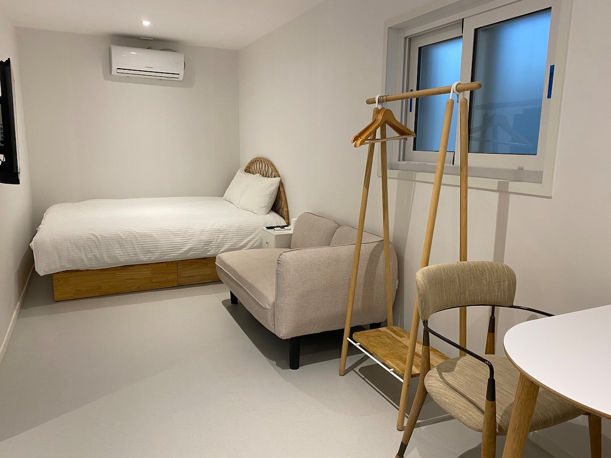 Tómate un descanso con tu pareja o amigo viendo una película con un proyector Pim en un alojamiento tranquilo y agradable (Netflix, Disney, YouTube). Descuento de evento 💘1 por 3 noches o más. Si te comunicas con nosotros por noches consecutivas, lo aplicaremos como un evento y lo modificaremos. 🍭Evento 2》 Beneficios para bebés (Extendemos una manta suave y una almohada para bebés en un sofá cama sin riesgo de caerse). Envíenos un mensaje. 👍Esterilizamos la habitación con fitoncidas todos los días.
