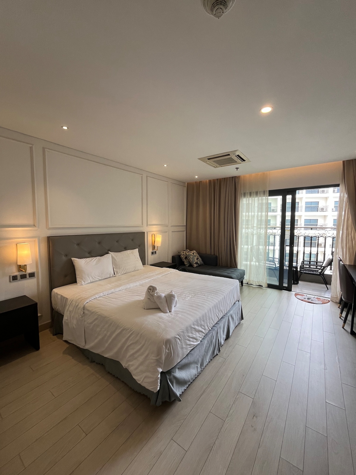 Este es un apartamento ubicado en el complejo hotelero Wyndham Danang Golden Bay de 5 estrellas. El departamento es operado independientemente por el propietario. Por lo tanto, el precio ofrecido por el anfitrión es flexible y atractivo. El alquiler es solo la mitad del precio de un hotel de 5 estrellas, pero se te proporciona una habitación limpia, cómoda y de calidad para una experiencia equivalente. Aquí, te sentirás como si estuvieras experimentando unas vacaciones en un lugar lujoso y tranquilo.
