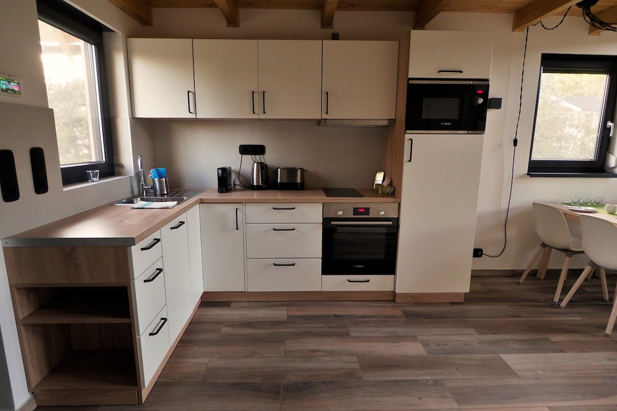 Zsíroshegyi Vendégház II: Nueva y lujosa casa de madera en un enorme jardín privado, ¡perfecta para relajarse! En la planta baja: salón con cocina abierta, mesa de comedor y un sofá que se convierte en una cama doble. El baño también está en esta planta con ducha y lavadora. El dormitorio con cama de matrimonio está en la primera planta. Hay una chimenea (de gas), aire acondicionado y calefacción por suelo radiante en la casa. Impuesto turístico: 300 HUF/día/persona (debe pagarse a la llegada)