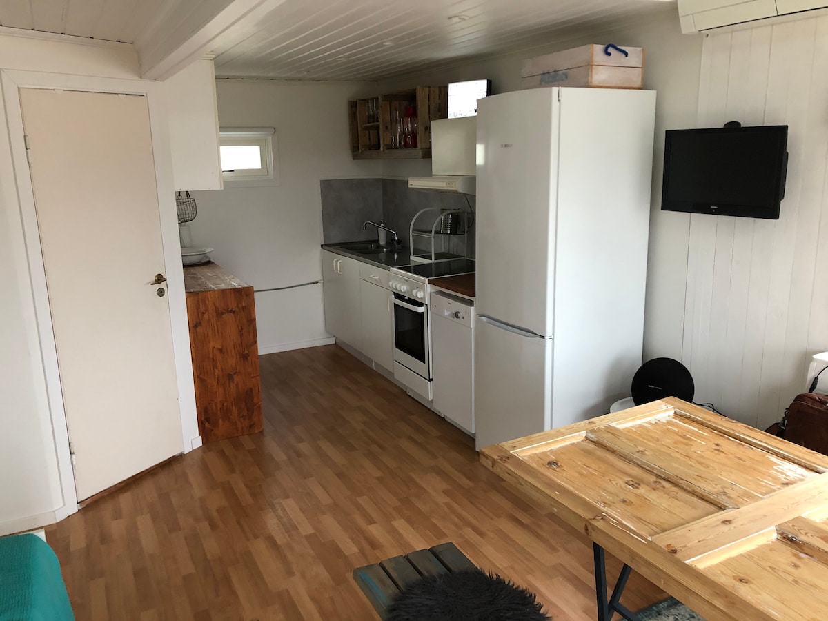 ¡Bienvenido a nuestro pequeño paraíso! En la esquina de nuestro jardín tenemos una casa que alquilamos. Se encuentra cerca del mar y de la playa en el antiguo pueblo pesquero de Träslövsläge. Si quieres alquilar esta casa por una semana o más a partir de septiembre, ¡envíame una solicitud de descuento! Esta pequeña casa (23 metros cuadrados) tiene su propio patio acogedor sobre la hierba debajo del manzano. Cerca de autobuses, restaurante, heladería y la playa (0,5 km). 6 km del centro de Varberg.