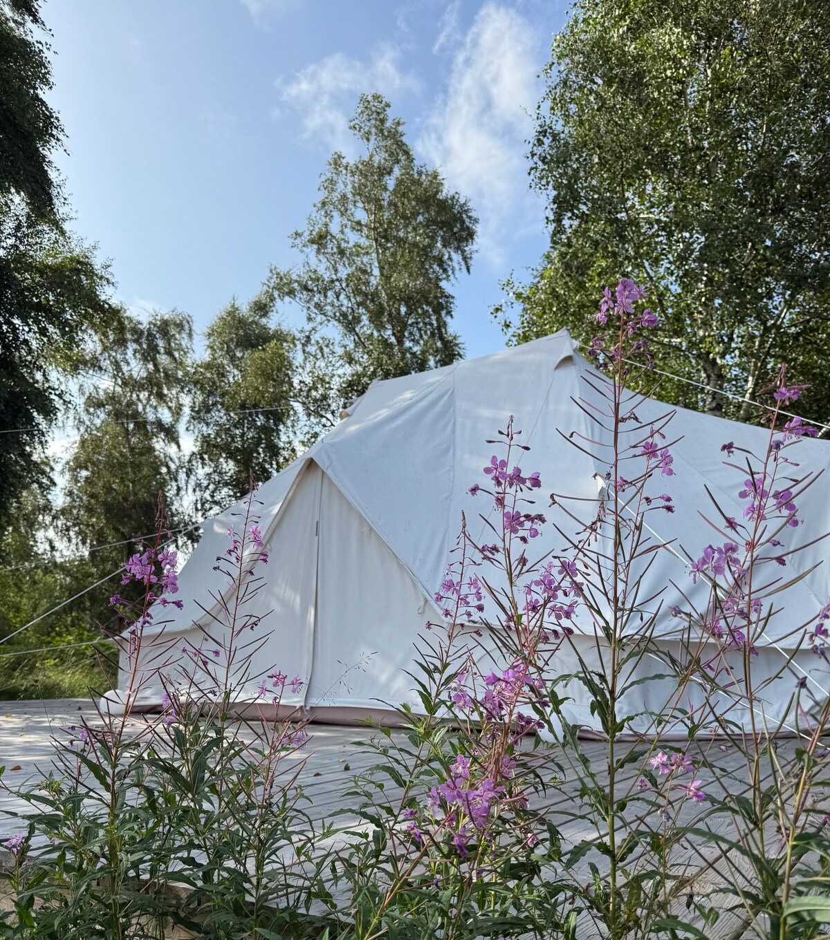¡Experimenta el glamping en el pintoresco Halland! Alójate en medio de nuestro jardín de alpacas con curiosas alpacas pastando justo fuera de la tienda. Aquí vives cómodamente en una amplia tienda de campaña con cama doble, tu propio inodoro de tierra y la posibilidad de cocinar en una hoguera. Una experiencia única y relajante en la naturaleza, perfecta para aquellos que quieren vivir cerca de animales, naturaleza y tranquilidad. La reserva incluye el desayuno Björnblads Glamping con, entre otras cosas, pan fresco y huevos de nuestras gallinas en la propiedad.