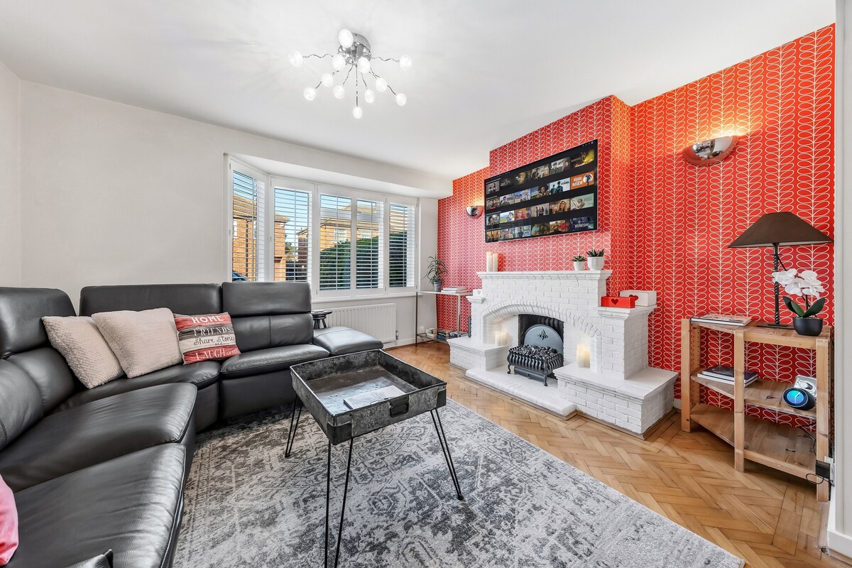 Grande, artístico, peculiar 2 dormitorios 2-6 huéspedes (habitación para 12 huéspedes en el sitio - envíanos un mensaje) Perfecto para fines de semana, estancias largas y trabajo remoto. Cocina completa, lavadora/secadora, carga EV, estacionamiento gratuito, apto para perros -2 máx. Más de 25 restaurantes. Tiendas divertidas: antigüedades, ropa, arte, regalos, flores y edredones. Camina hasta Henry VIII Hampton Court Palace & Flower Show, los barcos fluviales del Támesis y los Parkruns de Bushy Park. Camina hasta los trenes y autobuses de Londres a Twickenham y Richmond (hogar de Ted Lasso y LondonAtelierByproducts: ¡regalos y moda femenina!