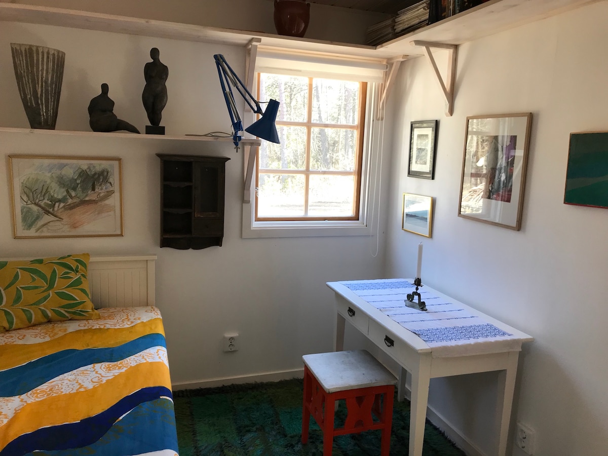 Antigua cervecera convertida en una casa práctica y práctica para 2 personas. Patio orientado al sur con impresionantes vistas y barbacoa. Parcela vallada de 9000 pies cuadrados. Paseos por el bosque a la vuelta de la esquina, a 5 km del lago de natación y a 7 km de las largas playas, tiendas y vida de restaurantes de Ljugarns. Moderna cocina totalmente equipada. Ducha con calefacción por suelo radiante, agua caliente para 2 personas (uso normal). Cama doble de 180 cm + cama extra de 70 cm de ancho. La limpieza final está incluida. Las sábanas y toallas no están incluidas, se pueden alquilar. La chimenea de la foto no funciona.
