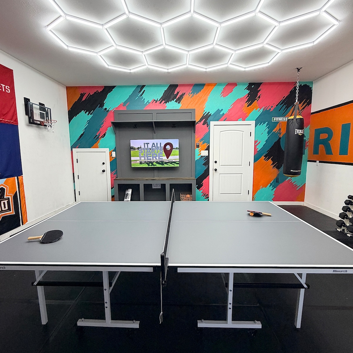 Disfruta de una escapada perfecta en una casa acogedora, moderna y actualizada ubicada en un lote de más de 1/4 acres con una piscina de 9 pies de profundidad, bar, spa, parrilla y salón. Hermosas y coloridas luces nocturnas con mucha privacidad en la piscina y el área del patio. La casa es espaciosa y duermen cómodamente 10 personas. 😊 con muebles, camas y colchones nuevos de última generación. La casa viene con todos los electrodomésticos, incluida lavadora, secadora y 3 televisores inteligentes y está equipada con ropa de cama y artículos de cocina de alta calidad.