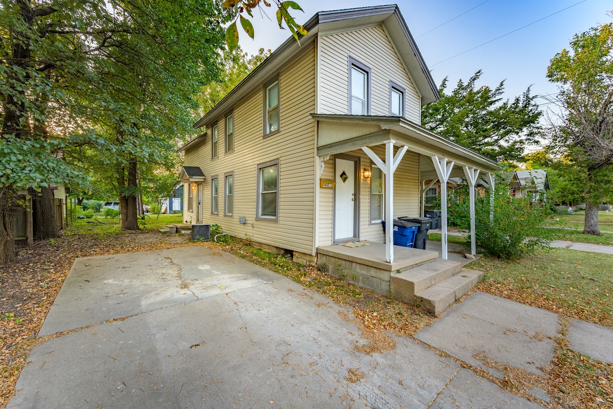 ¡Bienvenido a tu acogedor hogar lejos de casa en el corazón de Newton! Esta casa de 2 dormitorios y 1 baño es el refugio perfecto para parejas, familias o amigos que visitan la zona. Está a poca distancia a pie de Athletic Park y a poca distancia en auto de las tiendas de Main Street, Bethel College y más. Disfruta de una cama tamaño queen y de tamaño completo, baño con bañera/ducha, cocina completa, lavadora/secadora, patio grande, entrada larga, espacio de trabajo, sala de estar acogedora y asientos al aire libre.