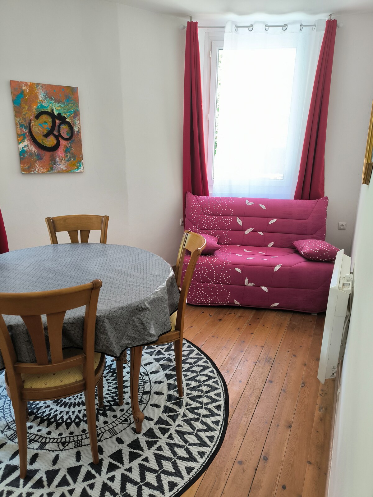 2 habitaciones: 1 dormitorio de oficina, y una sala de estar- cocina para una pequeña cocina auxiliar, no es posible hacer una cocina grande. El alojamiento tiene 35 m2 Baño privado. Aparentemente no fumador, pero se proporciona un espacio al aire libre En una casa habitada de arriba con entrada independiente. Casa muy fresca en verano Estacionamiento gratuito a 50 o 200 metros del alojamiento.
