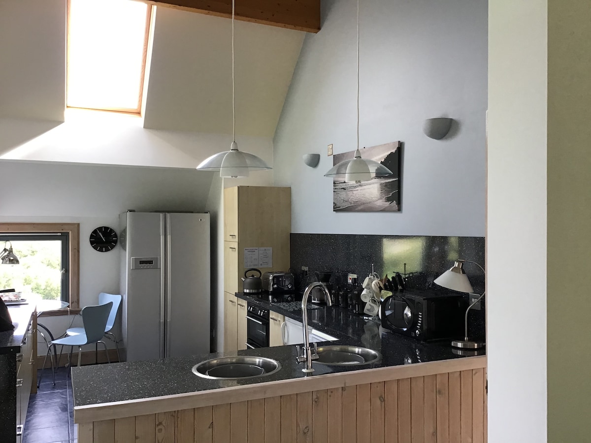 The Seashell, una encantadora casa de campo con cocina con vistas a Mar e islas en la isla de Skye. ¡Las vistas y las puestas de sol aquí son bastante maravillosas! Un entorno natural rural tranquilo y pacífico. Una casa de campo Skye diseñada por un arquitecto contemporáneo. Capacidad para 2 adultos. Una habitación con cama tamaño king y baño privado. Cocina de planta abierta, sala de estar, comedor/espacio de trabajo. Reservaciones semanales o quincenales De domingo a domingo. Cuna para bebés de 0 a 3 años. Tu perrito bien educado será bienvenido.