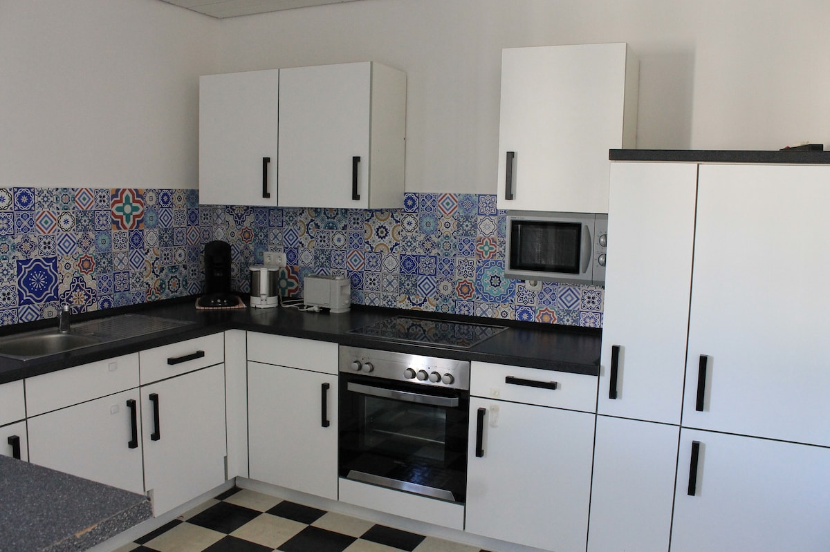Estimados huéspedes: nuestro alquiler vacacional se encuentra en una parte tranquila de Kell. En 115 m², podrás relajarte en el acogedor apartamento. Además de dos dormitorios, cada uno con una cama doble, el departamento tiene una gran sala de estar con chimenea, un balcón, una cocina y un moderno baño con ducha grande. La sala de estar y los dormitorios crean un alto grado de comodidad a través de los verdaderos pisos de madera.