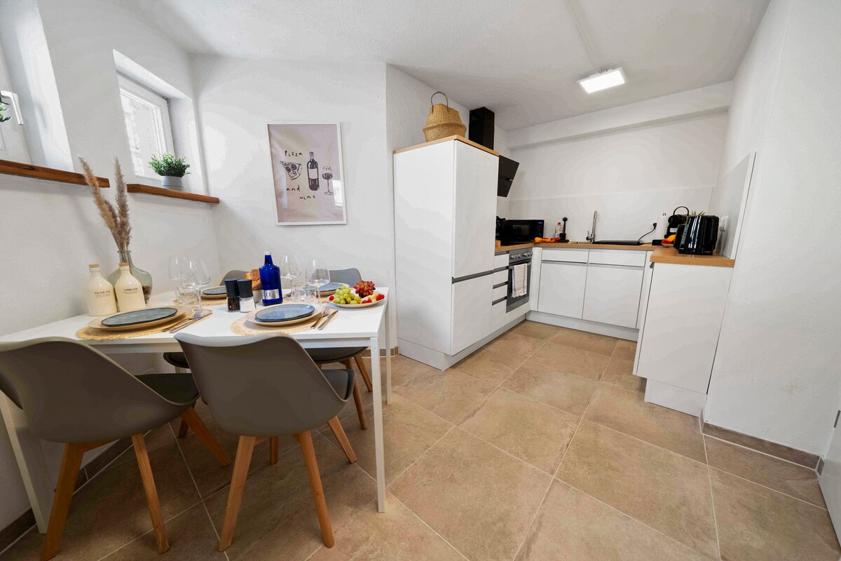 Apartamento luminoso de 120 metros cuadrados en planta baja con equipamiento de primer nivel Acceso sin llave Aire acondicionado Chimenea interior. Pisos de madera Cocina totalmente equipada 2 cafeteras totalmente automáticas Cama XXL 200x200 eléctrica Sala de estar XXL con función de cama persianas automáticas Solárium Internet de 100 Mbit Caja fuerte Terraza con cocina al aire libre En las afueras de Marktheidenfeld A 200 m de la calle principal/carril bici. Opción de carga de caja de pared hasta 22 kW € 0,49/kW Alquiler de bicicletas de montaña 10 € por bicicleta/por día