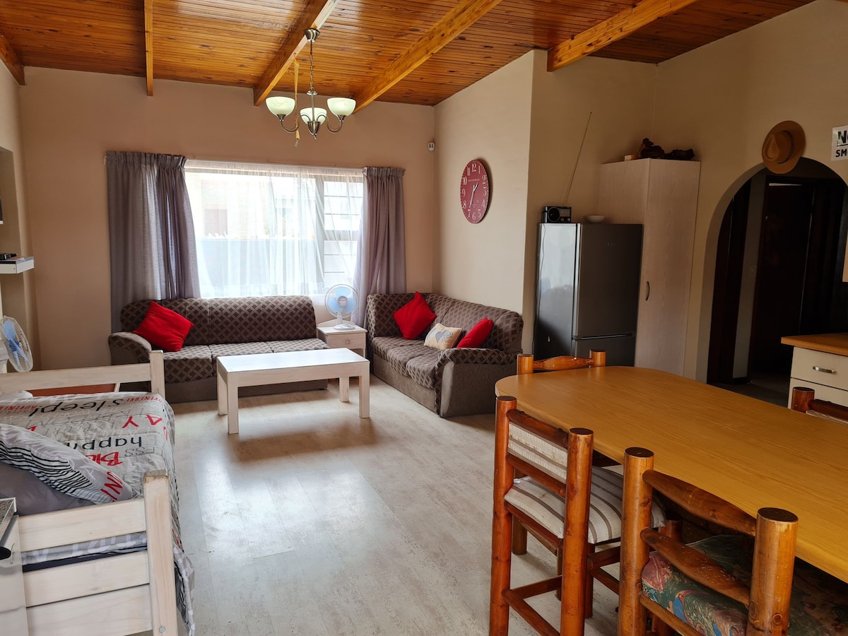 A nice 5 bedroom holiday home with a big garage for 3 cars and extras - great for big families; and/or groups of friends; and/or 3 families! The house is walking distance to the sea and Woermann Brock shopping mall. The place is also pet (small dogs) and child friendly. The house is self catering and consist of an private court yard with and outside "braai" The price depends on the quantity of guest, starting with N$650.00 for a family of 5 and ZAR100.00 p/p extra.