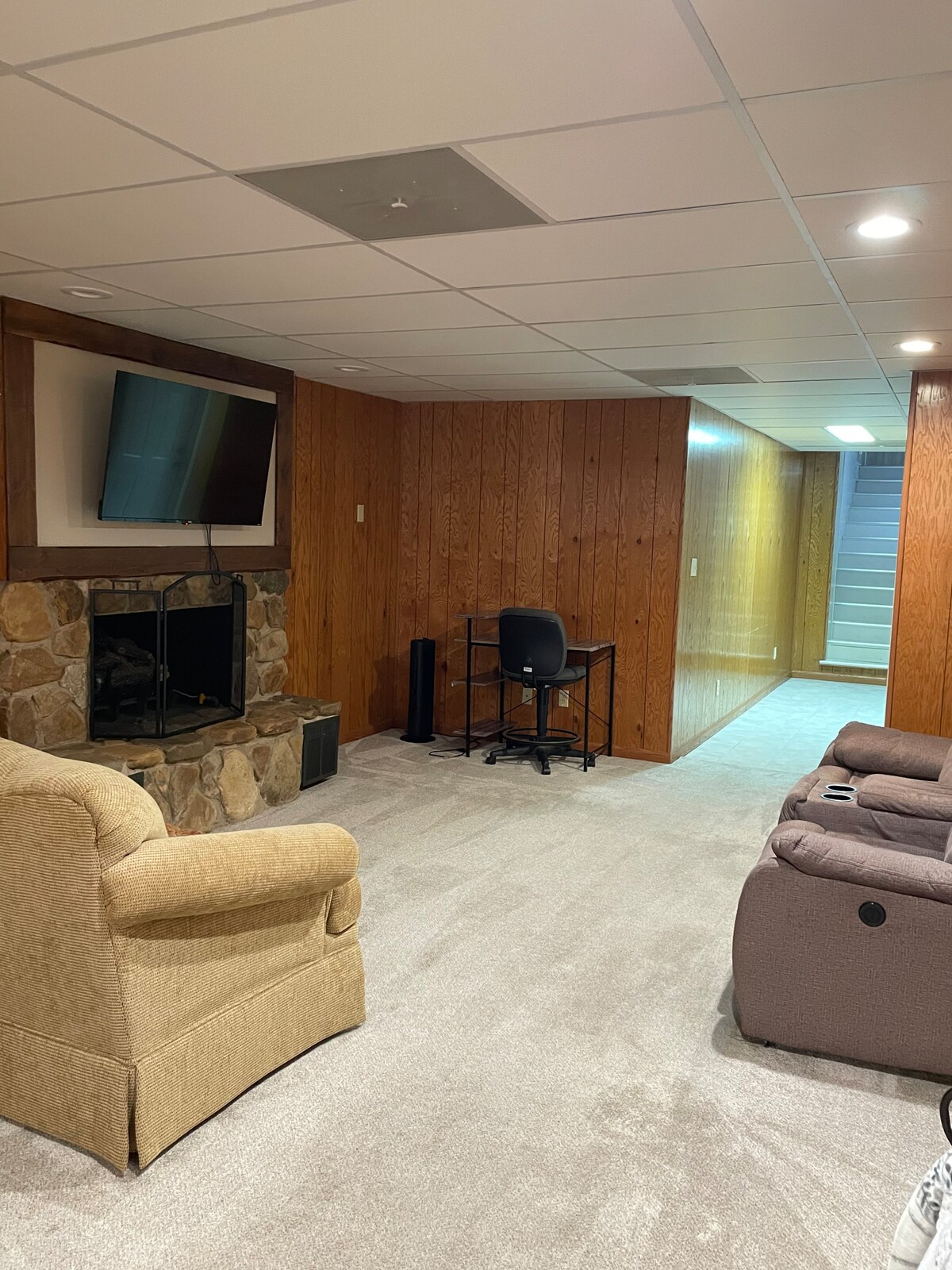 PET FRIENDLY-Frank Lloyd Wright design. This home is Unique and spacious! It is conveniently located near interstate 57, and 12 minutes from the Lake of Egypt. It is also close to Shawnee Hills National Forest for beautiful hiking trails and picnics as well as 12 local wineries! After your adventures, Relax in the rustic outdoor area that provides plenty of privacy. Or in the theatre room that has a large tv and recliners to watch your favorite movies or cheer on your favorite team!