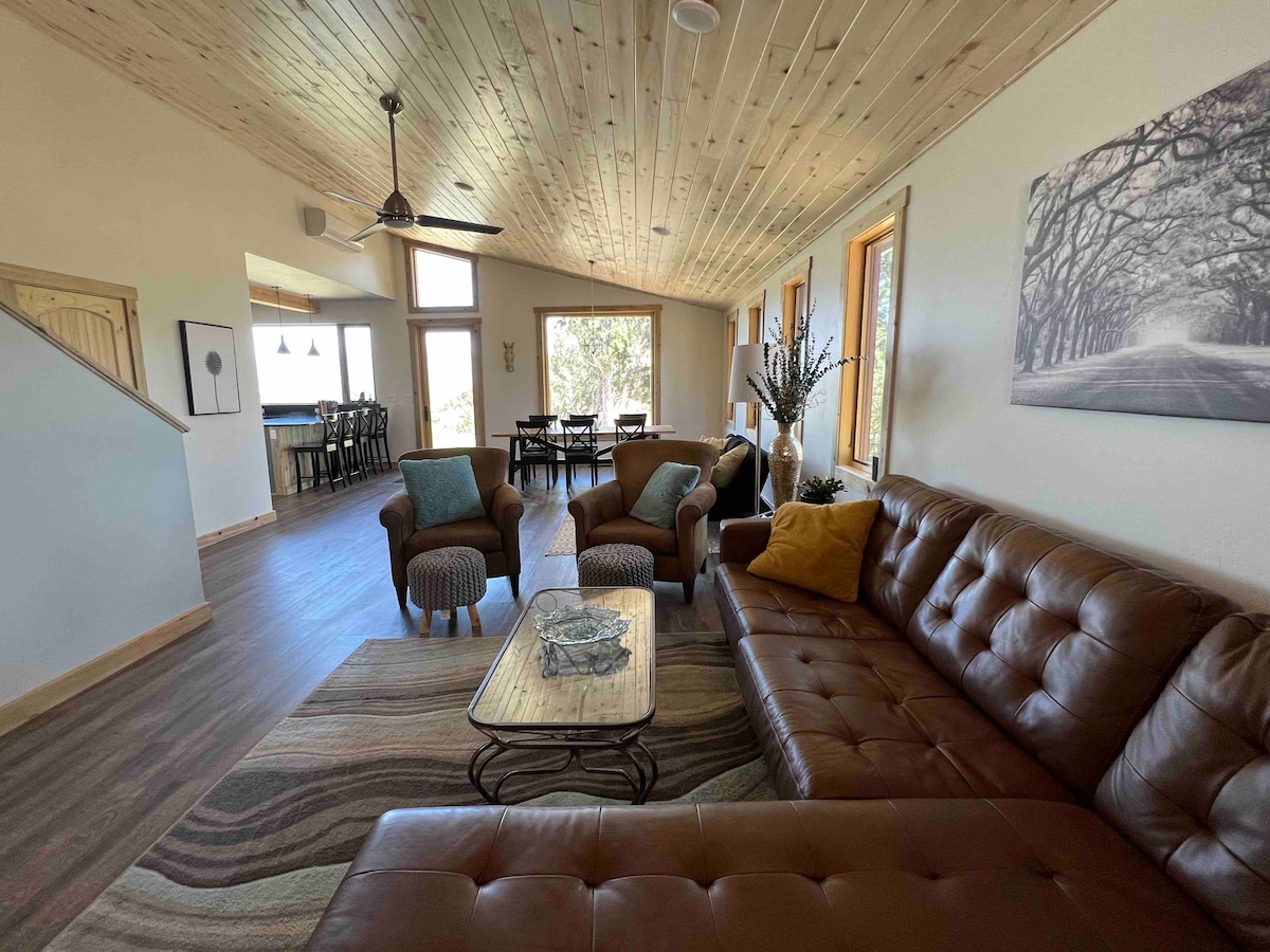 Relájate en esta mágica y tranquila casa moderna a solo 1 milla de la entrada del Parque Nacional Mesa Verde. Diseñada y construida por Lighthouse Construction, esta impresionante casa cuenta con 7 camas, espectaculares vistas a la montaña y 8 acres de mágico bosque antiguo para pasear. ¡Incluso puedes ver Mesa Verde desde la sala de estar! A las familias les encanta esta casa. Ubicada entre Cortez y Mancos con acceso a: Phil's World Bike Trails (7 millas), Durango (37 millas), Telluride (81 millas).