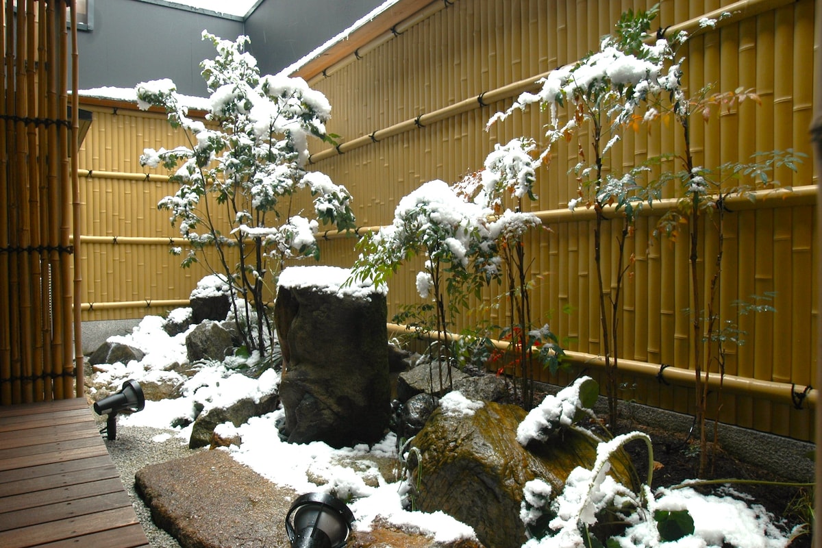 ***Feb 2020 OPEN, Opening Promotion 30% OFF in Feb & March*** 80 years old Machiya house renovated to Modern Machiya. "Machiya = Traditional Kyoto style house" This house has a small garden, called "Tsuboniwa" You can see the greens from Bedroom and Bath room. House is 80 years old, we have renovated it clean and convenient. And yet you can feel the old style and original sense. We have a unique bath tab, called "Goemon buro" Its a round shape tab made of Iron. This is a traditional bath tub.
