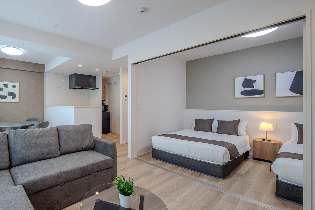 SOCIO RESIDENTIAL HOTEL – Opening February 2026 SOCIO RESIDENTIAL HOTEL is an apartment-style hotel located a 5-min walk from JR Tenjingawa Station, just 1 stop from Hiroshima Sta. Designed for comfortable living, it is suitable for sightseeing, business trips, and mid- to long-term stays. AEON Mall Hiroshima Fuchu is within walking distance, and access to Hiroshima city attractions and Miyajima is convenient. Enjoy a comfortable and flexible stay in Hiroshima at SOCIO RESIDENTIAL HOTEL.