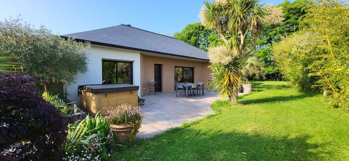 Maison neuve de plain-pied avec garage, située sur la presqu'ile d Hillion en plein coeur d une réserve naturelle, 800 m de la mer et du GR34 45 mn de la côte de granit rose 1h de la ville corsaire St Malo 15 mn de la station balnéaire du Val André 40 mn du Cap Fréhel et des plages de sables fin des Sables d'Or les pins 5 mn du Parc aventure Indiana Forest Accrobranche N hésitez pas à venir vous ressourcer, vous reposer et passer de bons moments en famille
