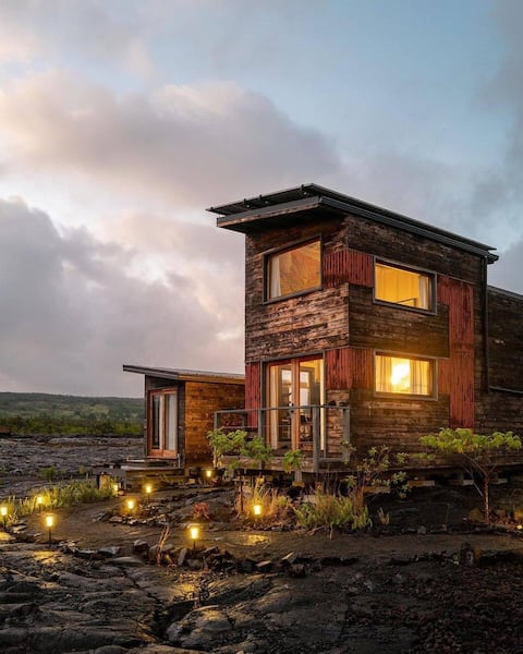 Experience a magical, memorable retreat at The Ohana House—a unique, off-grid tiny home on the Kalapana lava beds near the feet of Kilauea Volcano. Enjoy epic volcano views, double rainbows and wondrous stargazing, while still enjoying comforts like electricity, high-speed WiFi, & hot showers. This 2 BR gem sleeps up to 4 guests. Nestled in an eclectic, quirky neighborhood, you're minutes away from local farmers’ markets, black sand beaches & scenic coastal drives. Perfect for a magical stay!
