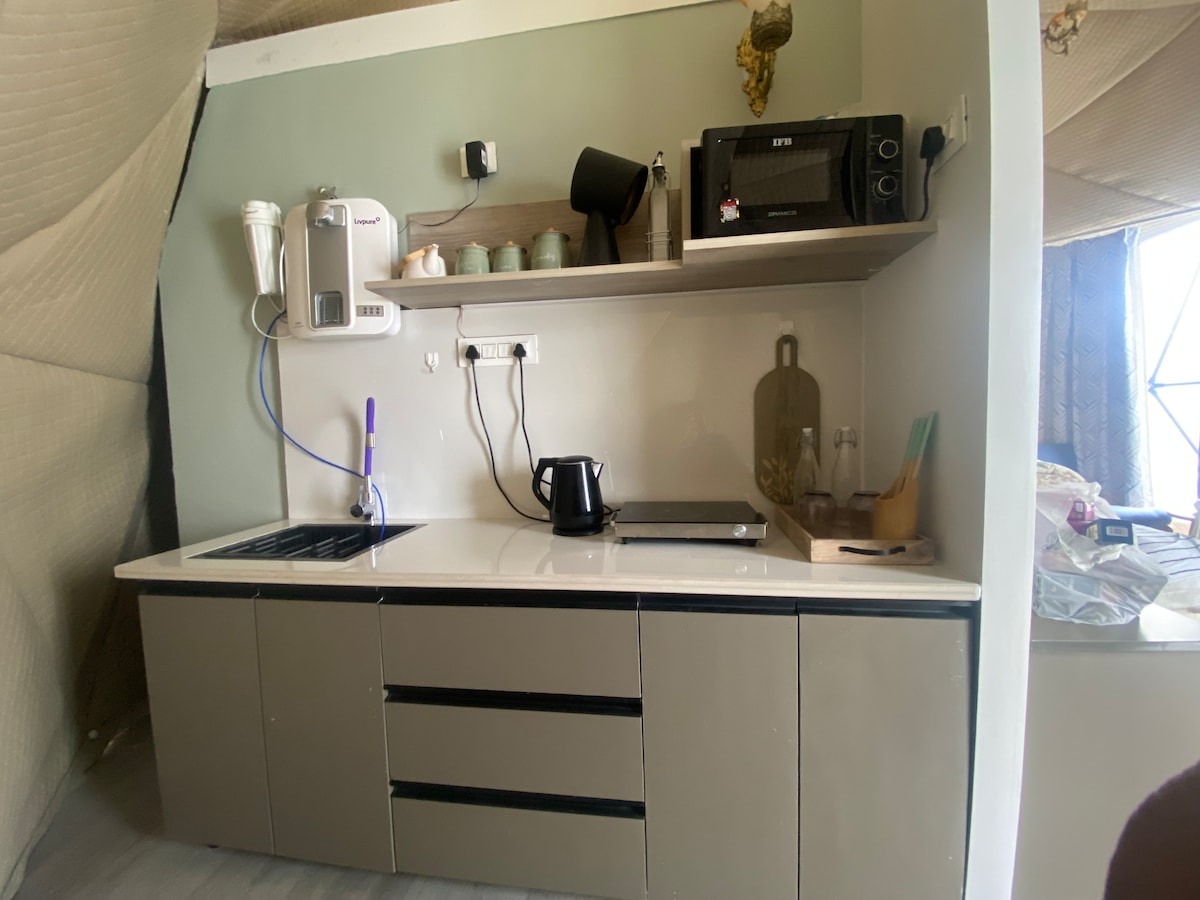 * Himalayan Ridge Glamping Domes es un destino perfecto para personas que buscan destinos únicos y menos concurridos. * Situado a una altura de aproximadamente 8000 pies. Nuestras cúpulas poco convencionales ofrecen unas vistas impresionantes de las cordilleras nevadas y el hermoso valle. * Las atracciones cercanas incluyen la cascada Jana y el castillo de Naggar. * Cocina delicias para tus seres queridos en nuestra cocina, que está equipada con todos los electrodomésticos (horno, placa de cocción de infrarrojos, purificador RO, cafetera, etc.), utensilios y cubiertos.