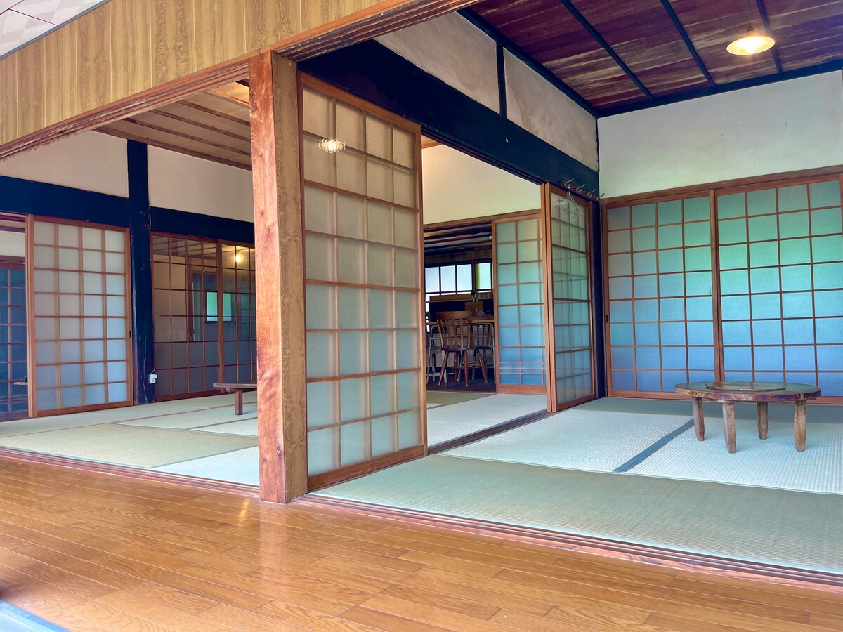 Esta es una propiedad de alquiler privada donde puedes disfrutar del campo. Es una propiedad muy habitable con cocina, wifi, calefacción y refrigeración, y lavadora y secadora.También hay muchos condimentos y cubiertos, para que puedas disfrutar de la cocina. Aquí puedes experimentar el campo libremente con tus familiares y amigos. Hay muchas habitaciones de tatami y creo que me recuerda a la casa de mi abuela en el campo. También hay propiedades solo para anfitriones en el edificio separado, por lo que puedes comer y tomar un té contigo si quieres. Los anfitriones están ansiosos por interactuar con los huéspedes.Estaría encantado de que pudieras contarme un poco sobre ti al reservar. ¿De dónde vienes? Estoy viajando para este fin Me interesa una casa antigua Anhelo la vida rural, etc.