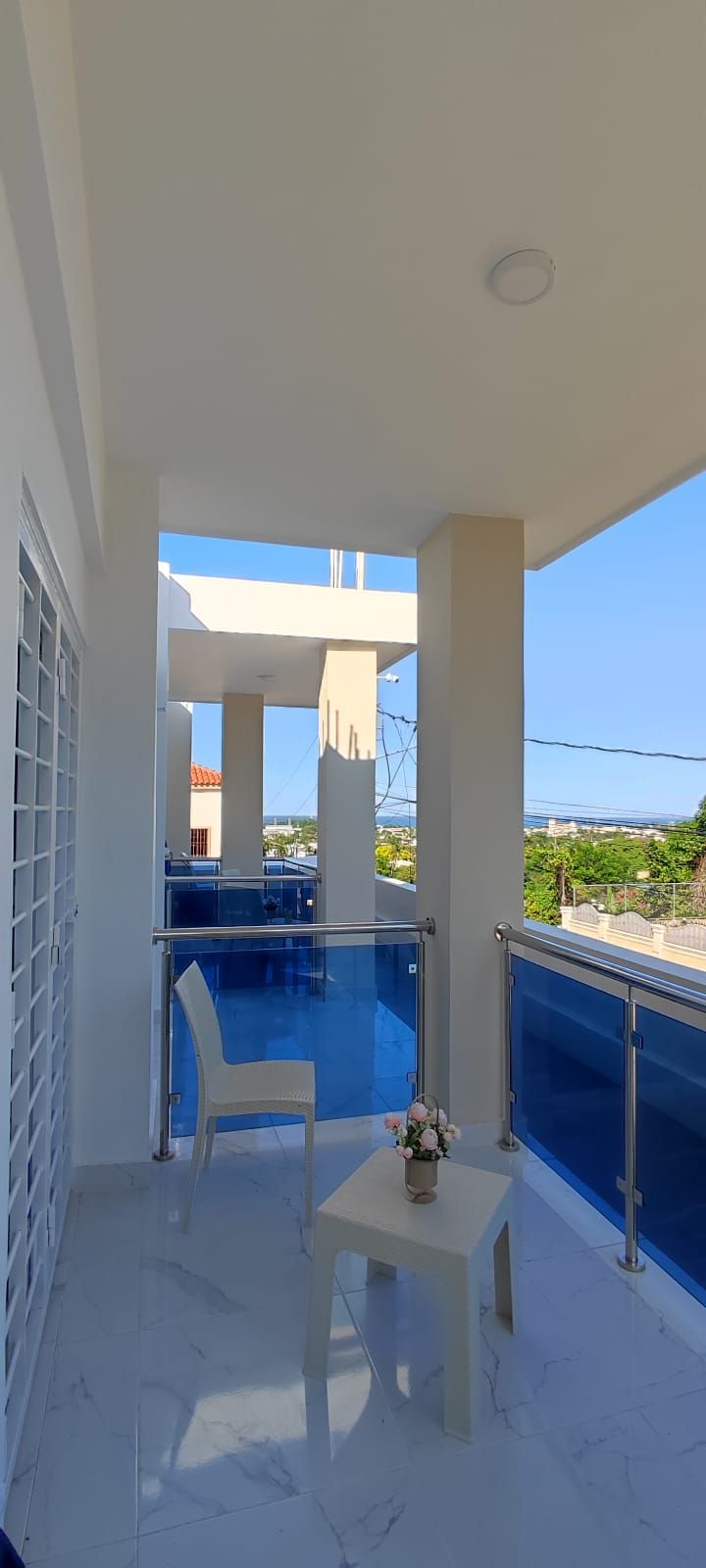 Bonito apartamento a unos 1 km del mar y del centro histórico de Puerto Plata con una hermosa vista de la ciudad y las montañas y el mar . En una zona privada y tranquila a pocos pasos de todos los servicios de supermercado, playas restaurantes bien equipados La casa tiene estacionamiento privado con una puerta automática y una hermosa piscina con tumbonas y mesa de centro al aire libre. Equipado con todas las comodidades, cocina con isla, gran sala de estar con sofá cama, 2 dormitorios, 2 baños con aire acondicionado, zona de lavandería y balcón