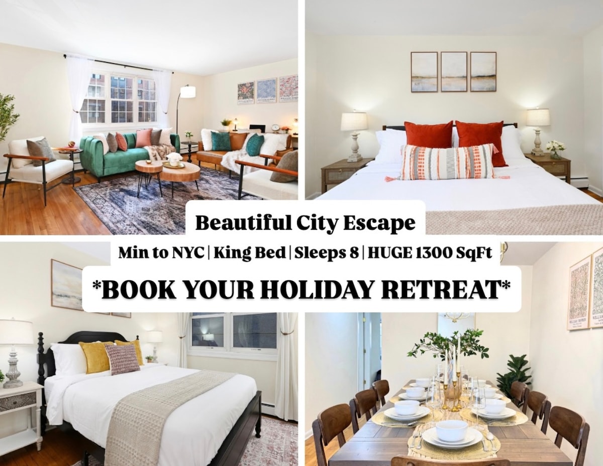 Hermoso y acogedor 3BR minutos a Nueva York con cama tamaño king para 8 personas