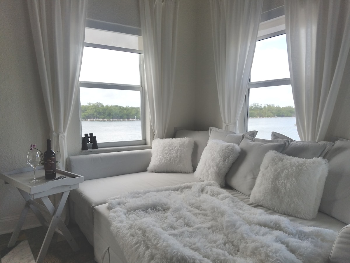 DBPR#CND1621396. Ciudad#B9070150-2026. Encantador apartamento de planta abierta de 1 dormitorio en el segundo piso de la vía fluvial intercostal con impresionantes vistas al agua y puestas de sol. A pocos pasos de Hollywood Beach, tiendas y restaurantes del paseo marítimo. Cama tamaño queen y sofá cama Lavar/secar en el lugar. Cocina completa y amueblada con buen gusto para una estancia relajante. Plaza de estacionamiento privado y a poca distancia a pie de Margaritaville Resort (taxi acuático a Las Olas). Una tienda cercana las 24 horas. Al menos 1 huésped de más de 30 años, sin ruido a las 10:00 p. m., sin fiestas, sin camiones/autos largos. Disfruta