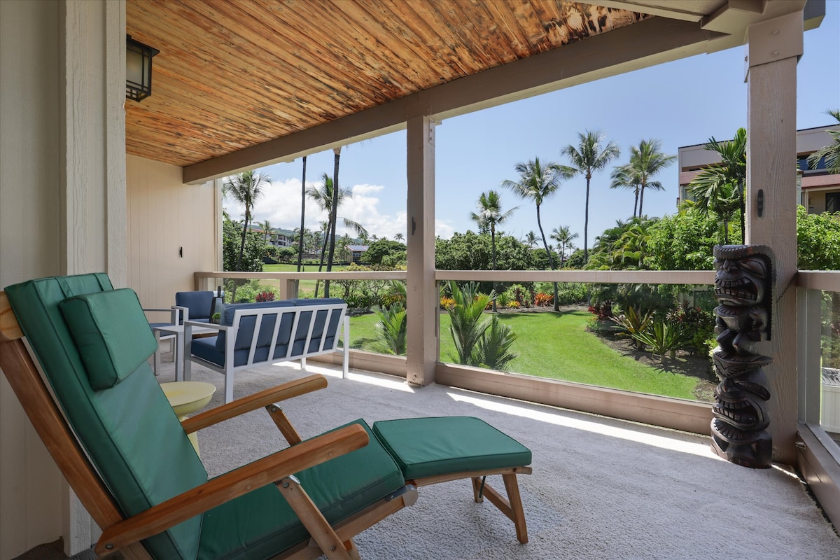 Welcome to our home “Hale ma ka Kìhàpai” @ Keauhou Surf and Racquet Club. Bright and spacious 2BR/2BA corner home in a gated oceanfront community, set along the 13th hole of the Kona Country Club. Enjoy a 400 sq ft wrap-around lanai with garden, golf course, and partial ocean views. Surrounded by plumeria, palms, and orchids.