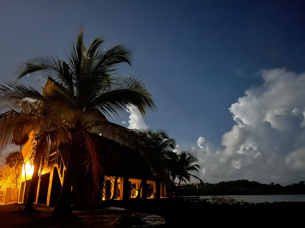 Te invitamos a disfrutar de nuestra hermosa villa de 4 acres, rodeada de un bosque tropical y con vistas a las aguas azules del Caribe. Disfrutarás de atardeceres asombrosos, mimado en un entorno de lujo. Estamos lejos del tráfico turístico, pero cerca de todo. ¿Eres buceador? La tienda de buceo te recogerá en nuestro muelle. O, nadar en el muelle, pescar en el Bight, hacer kayak a través de los manglares. Lujosas suites principales, cocina gourmet, piscina infinita... Camina por el laberinto. Huele las orquídeas. ¡Paraíso!