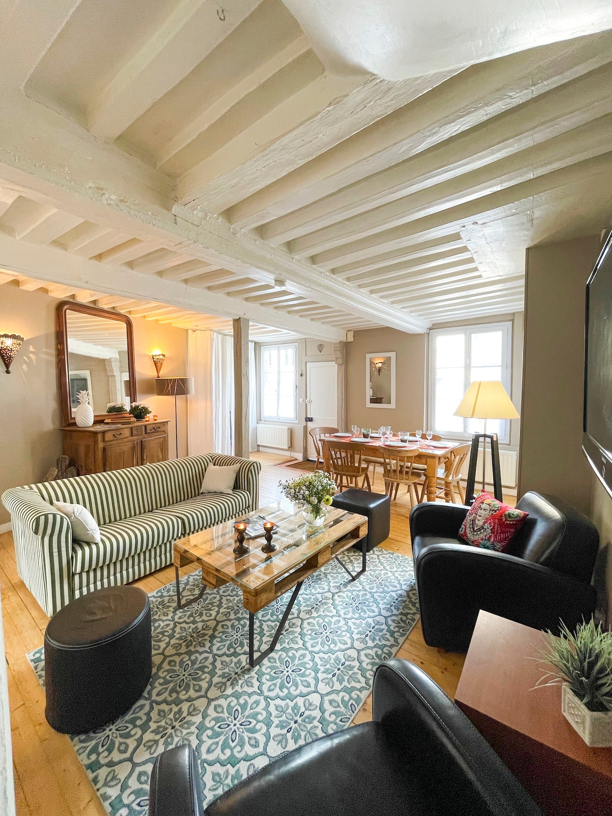 *Alojamiento clasificado 3 estrellas por el ministerio encargado de turismo* A 2 minutos de la iglesia de Santa Catalina/ 3 minutos del puerto viejo/8 minutos de la playa /4 minutos del Sena. Apartamento del siglo XV, renovado y luminoso en el CENTRO en el barrio histórico, en el primer piso de un edificio de entramado de madera azul. Las fachadas de los edificios de esta calle son únicas y en parte clasificadas como monumentos históricos Raro estacionamiento gratuito cercano Cocina equipada/Fibra óptica/Barrio tranquilo/Sábanas/toallas/NETFLIX gratis