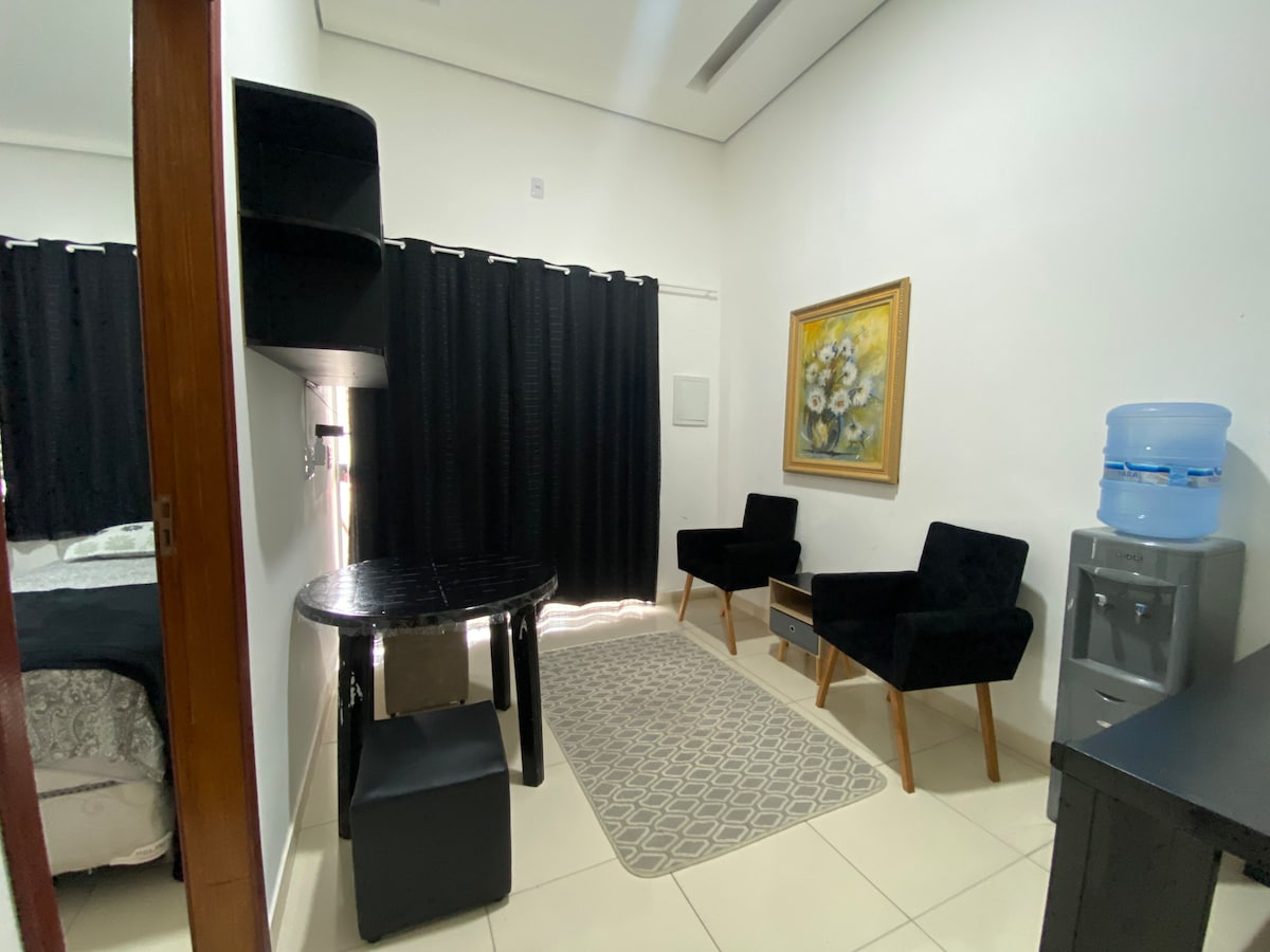El estudio se encuentra en un complejo de apartamentos y cuenta con 1 habitación doble, segura, limpia y bien ubicada. El apartamento está en el segundo piso de un edificio, hay que subir escaleras. Se encuentra a 12 minutos del Aeropuerto Internacional Eduardo Gomes, a 11 minutos del centro comercial más cercano (Shopping Ponta Negra), a 6 minutos de la Arena da Amazônia y a 16 minutos del Centro Histórico de Manaus. Situado en un edificio con farmacia y a menos de 100 m cuenta con gasolinera, tienda de conveniencia, panadería y tiendas de comestibles.