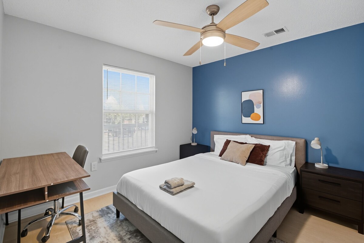 Descubre tu acogedor refugio en Fayetteville. Ubicada en un barrio seguro y bien establecido, rodeado de la belleza de la naturaleza, encontrarás una luminosa suite de 1 dormitorio y 1 baño. Incluye una generosa televisión y un cómodo sofá cama extraíble. En una ubicación céntrica privilegiada tanto para el centro como para Fort Liberty, es un refugio perfecto rodeado de árboles. Carga tu Tesla y trabaja en un espacio ideal para tus esfuerzos profesionales y creativos. Este espacio es la mezcla perfecta de comodidad y serenidad.
