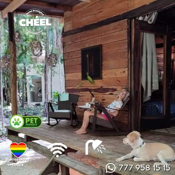 Habitación en alojamiento ecológico en Puerto Morelos, México