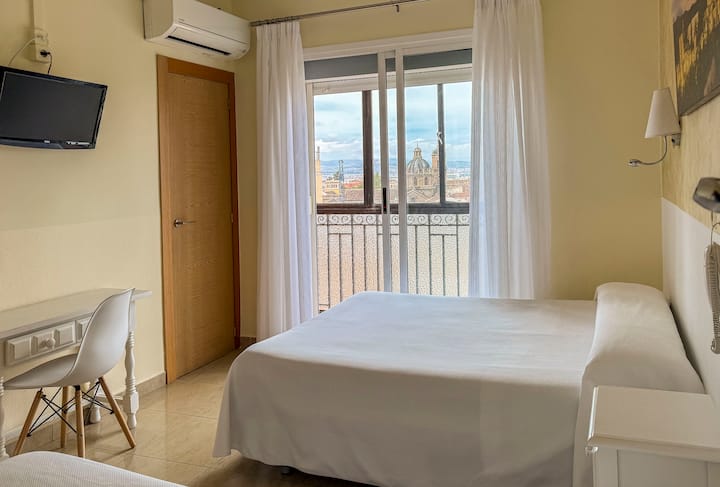 Descubre Granada desde una ubicación inmejorable. En Hostal Sonia te ofrecemos habitaciones cómodas con baño privado, Wi-Fi y aire acondicionado. Estamos en pleno centro, rodeados de historia, tapas y vida local. Ideal para moverte a pie y vivir la ciudad al máximo. Trato cercano, ambiente tranquilo y todo lo necesario para que disfrutes tu estancia como si estuvieras en casa.