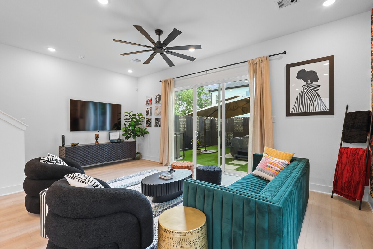 Live in the center of it all at this artsy home — just minutes from Houston’s top dining, nightlife, and cultural hotspots. Enjoy quick access to downtown, Shell Energy Stadium, local breweries, and vibrant parks. With I-69, I-45, and METRORail nearby, getting to Midtown, the Medical Center, or the Museum District is effortless. Whether you're catching a game, exploring museums, or grabbing coffee, this location puts Houston’s best right at your doorstep.