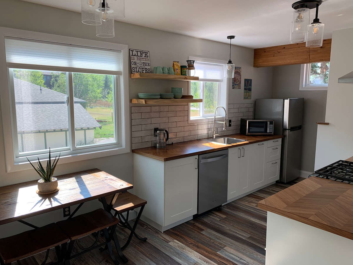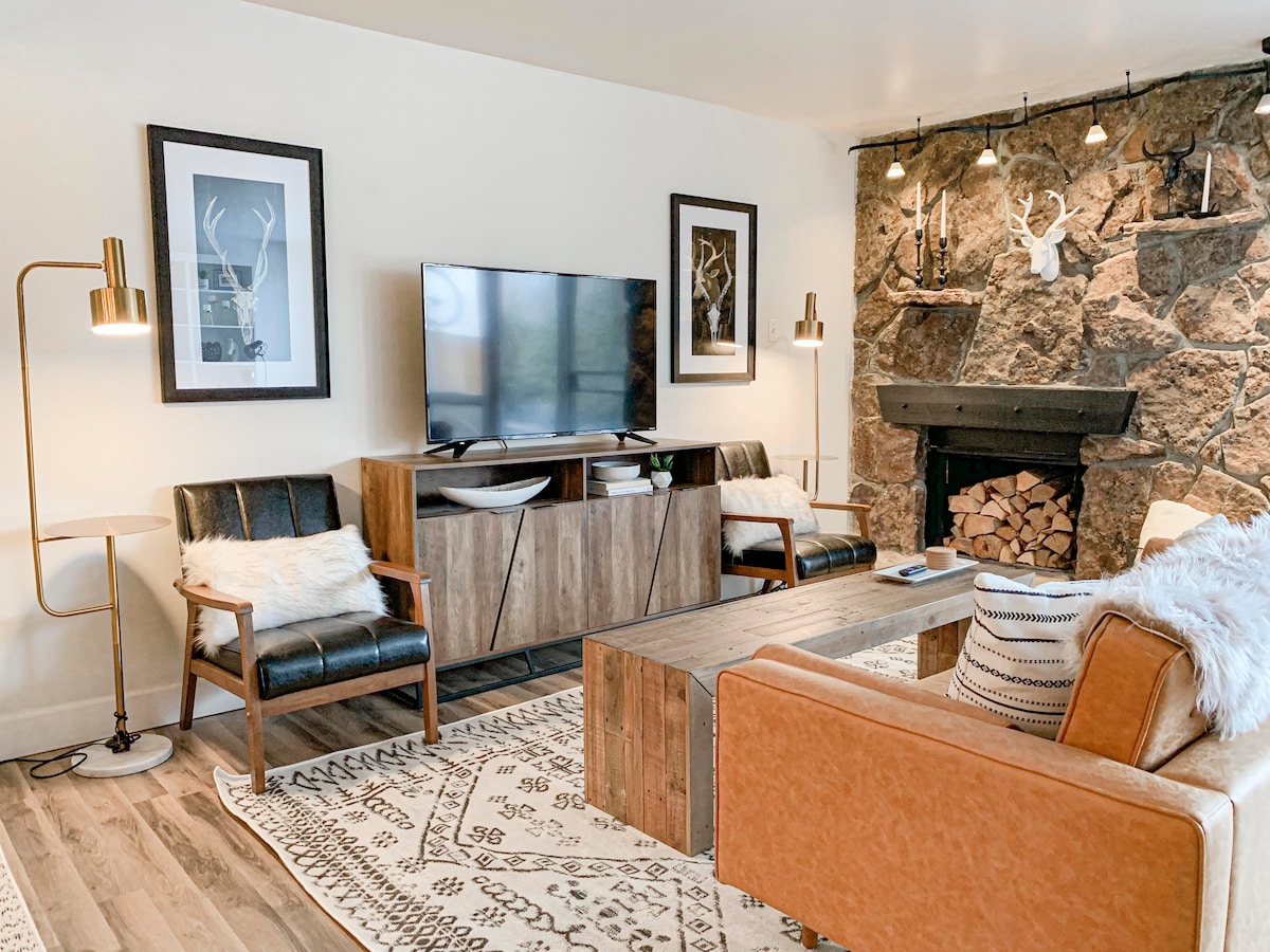– 765 pies cuadrados, apartamento en el primer piso. - Patio privado con vistas espectaculares a la montaña. – A 5 minutos a pie de 2 grandes tiendas de comestibles/licorerías. – 2 bañeras de hidromasaje a pasos de la puerta principal, limpiadas diariamente con vestuario climatizado. - Eficiente chimenea de gas. - Autobús gratuito a la montaña y al centro de la ciudad, a 5 minutos en cualquier dirección. - Cocina totalmente surtida con especias, licuadora y equipo de cocina completo. – Se proporciona café, té y avena gratis. - Se proporcionan jabón, champú y acondicionador. - A minutos de aguas de truchas de cinta azul y del sendero central.