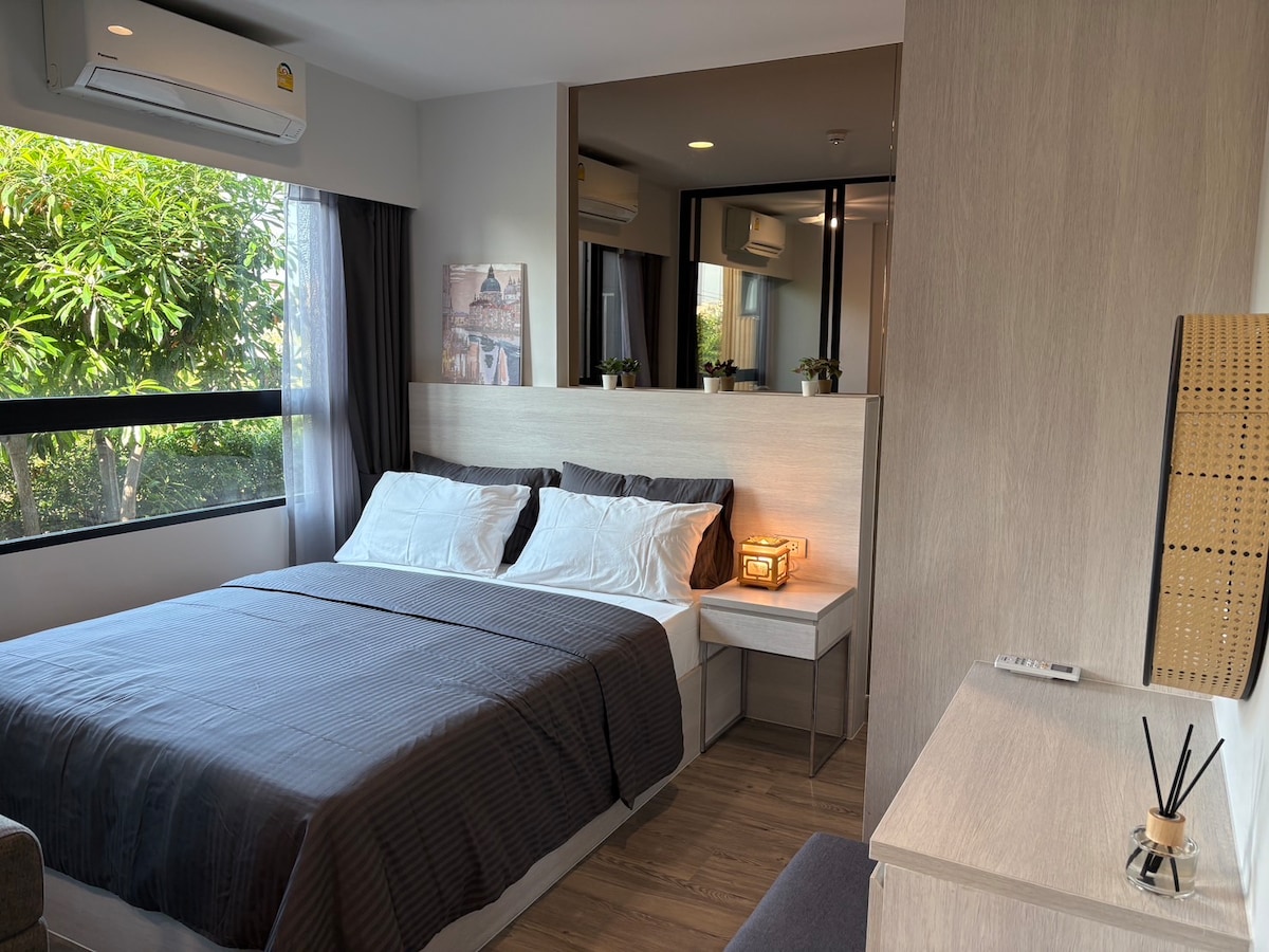 Sueña que te estés relajando en una playa y veas la puesta de sol el día en tus ojos ✔Tranquilo condominio frente a la playa, piscina privada y playa. ✔Transforma la sala de estar en otro dormitorio privado para 2 parejas, amigos o familiares. ✔La nueva habitación acaba de terminar de renovar todo en 2022. ✔Al igual que las comodidades del hotel de 5 estrellas en la habitación. ✔Junto al supermercado y 7-11. ✔*** Garantizo una estancia absolutamente privada. No se permite compartir, no se permiten disturbios. ✔* ** Superanfitrión amigable con el servicio de asistencia las 24 horas antes de น้องมังคุด