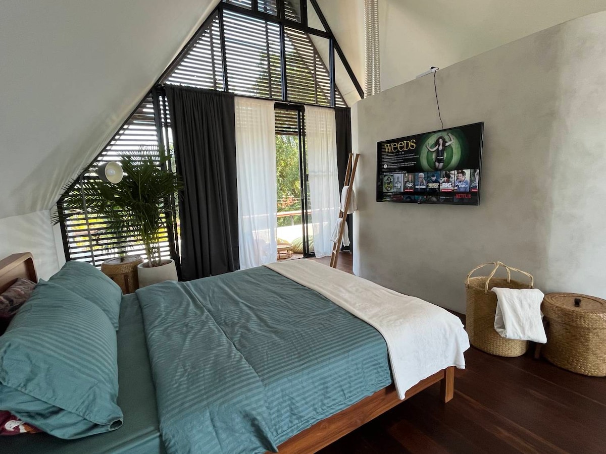 Esta lujosa y muy espaciosa villa de 3 dormitorios emana comodidad con una cama Emporer en el dormitorio principal con un gran baño privado con lavabo doble y ducha de efecto lluvia. El segundo dormitorio tiene una cama tamaño king y el tercer dormitorio tiene 2 camas individuales grandes. La sala de estar tiene un gran sofá de 3 piezas con un televisor de 65 pulgadas, Netflix, Spotify y PS 4. La cocina está totalmente equipada con máquina Nespresso, nevera grande y barra larga con taburetes de bar. La piscina exterior rodea la terraza con muebles para comer al aire libre.