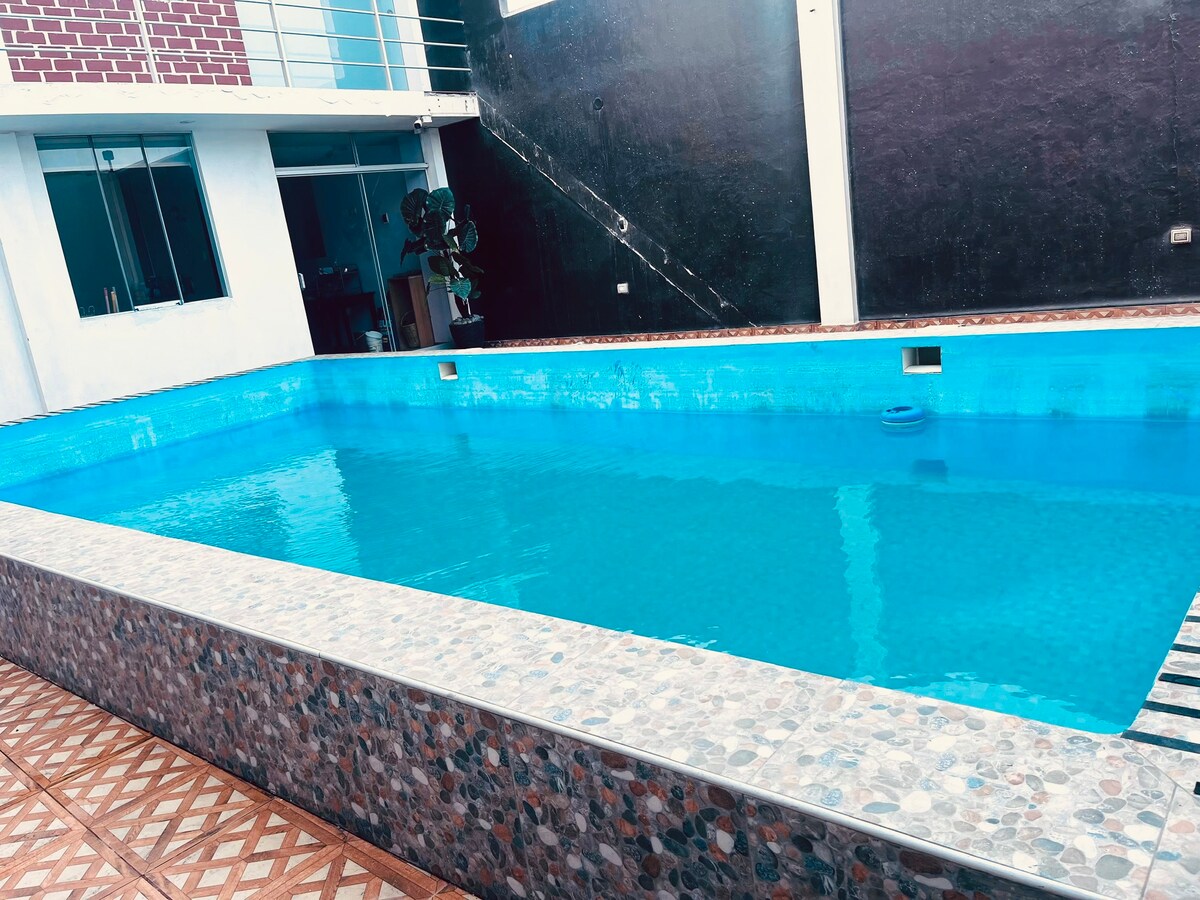 Lugar tranquilo, con 7 habitaciones con baño privado cada una (agua caliente en la ducha), ubicadas alrededor de la piscina (de temporada); las habitaciones se entregan con sábanas, cobertor y toallas de baño. Algunas habitaciones cuentan con televisor con cable. Hay Wifi gratuito en todo el establecimiento. El área social cuenta con: sala de estar, cocina (equipada con todo lo necesario), amplio comedor y parrilla. Ideal para un descanso de fin de semana con familia o amigos.