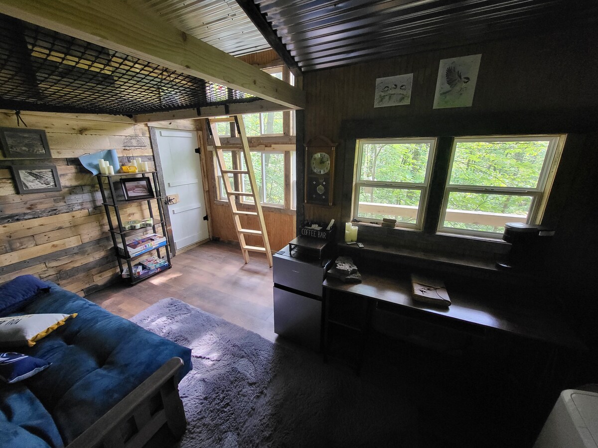 Encantadora y tranquila casa del árbol de 1 habitación con loft