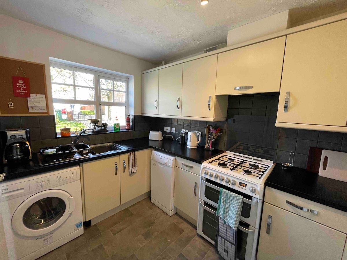 Acogedora residencia independiente bien mantenida con aparcamiento seguro, a 1 minuto de la autopista y a poca distancia a pie del centro de la ciudad de Stafford (20 minutos), cerca de los servicios locales (gimnasio/restaurantes/supermercado/lavandería/bolera/láser tag). La casa del entrenador es un anexo en los jardines de nuestra casa con un dormitorio doble en el nivel del entrepiso. En la planta baja, un sofá cama tamaño king en el salón, una cocina bien equipada y un baño con buena ducha y bañera. 2 televisores inteligentes con 2 reproductores de DVD y wifi de fibra.