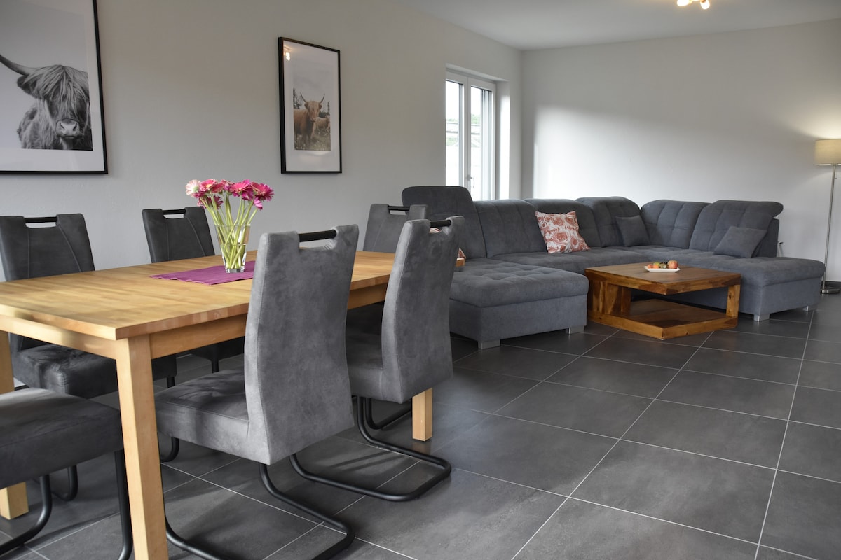 Departamento cerrado en el primer piso de nuestra casa. Smart TV (Sky, DAZN), sala de estar, TV en las habitaciones, cocina totalmente equipada con lavavajillas, sofá se puede usar como sofá cama para una persona, balcón cubierto con vistas a la altura del Mosel, bicicleta, garaje para motocicletas, camas para niños pequeños y sillas altas bajo petición, parque infantil, carril para bicicletas directamente desde casa, estacionamiento, supermercados a 800 m, camino a la ciudad sin subidas, ¡los niños son bienvenidos! Tarifa del huésped/tarjeta de huésped en el precio incl.