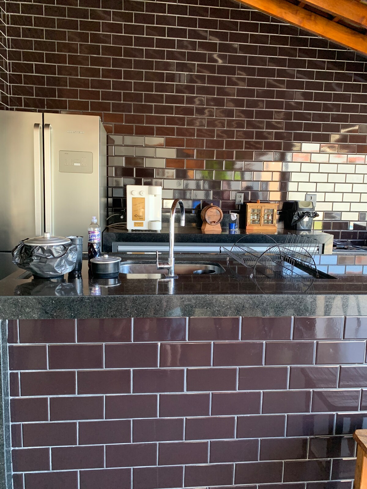 Casa grande y acogedora en un condominio náutico en Río Grande, cerca de Delta-MG. Ideal para descansar y crear recuerdos especiales. Hay 3 dormitorios (1 suite con aire acondicionado y 2 con ventiladores), camas y colchones cómodos, una amplia sala de estar y cocina equipada, así como un balcón. Zona de esparcimiento con piscina, cancha de voleibol y ducha. Condominio con playa privada, pesca y puerto deportivo, rodeado de naturaleza y tranquilidad.