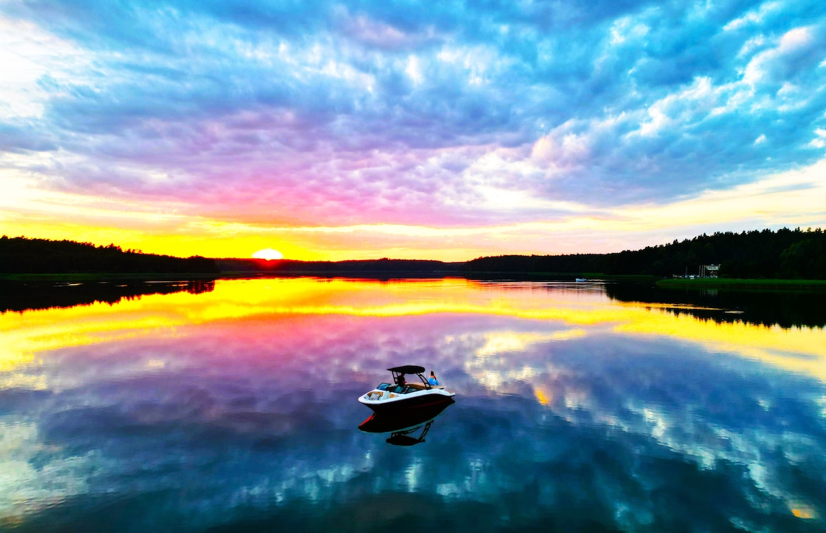 Te invitamos a visitar la zona occidental de Masuria para pasar un rato maravilloso en nuestra villa de lujo situada justo en la orilla del lago Pozen (3 metros). Desde la gran terraza puedes disfrutar de la vista de todo el lago, así como de los alrededores del bosque Tabor. Nuestra casa es el lugar ideal para familias que buscan vacaciones activas en el agua, bicicleta en el bosque, así como para personas que buscan un lugar para relajarse y descansar en la naturaleza. También es un paraíso para los amantes de los deportes acuáticos y los adictos a la pesca.