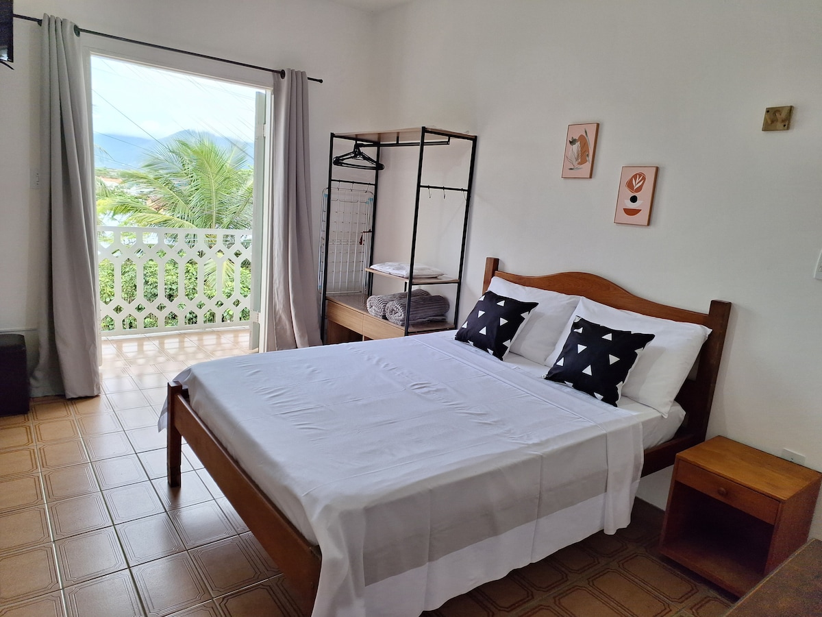 Encantadora suite, ideal para parejas que buscan comodidad, privacidad y estilo. Cuenta con una relajante bañera, cama doble, cocina compacta y piscina. La decoración es vibrante, sofisticada y llena de personalidad, creando un ambiente cálido y único. Incluimos un juego completo de sábanas de cama y baño, lo que garantiza más comodidad durante tu estancia. Ubicación estratégica: a 2 km del ferry, a 1,5 km de Praia do Perequê y a 3,1 km de Ilha das Cabras. Una invitación a descansar con el encanto de Ilhabela.