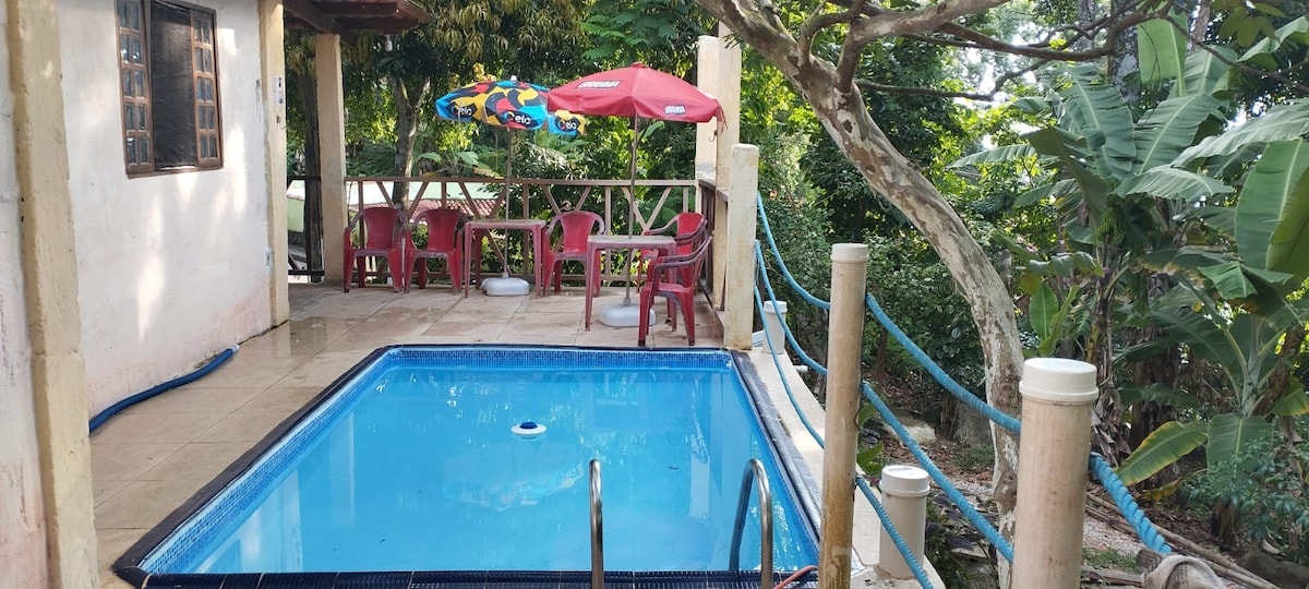 Casa (120 m2) en el antiguo parque acuático de Ilhabela con 2 baños, cocina completa, Wi-Fi rápido (1000 Mbps de fibra óptica), área con su propio patio con barbacoa y piscina natural para uso exclusivo de quienes alquilan esta casa. En el segundo piso, hay una suite con vista a las estrellas desde la cama tamaño king, la bañera y el balcón. El gran balcón con mesa de billar y hamaca conduce a un puente al mirador de las cascadas. Ubicación muy céntrica, cerca de las playas, ya sea al sur, Vila, norte u otro lado de la isla.