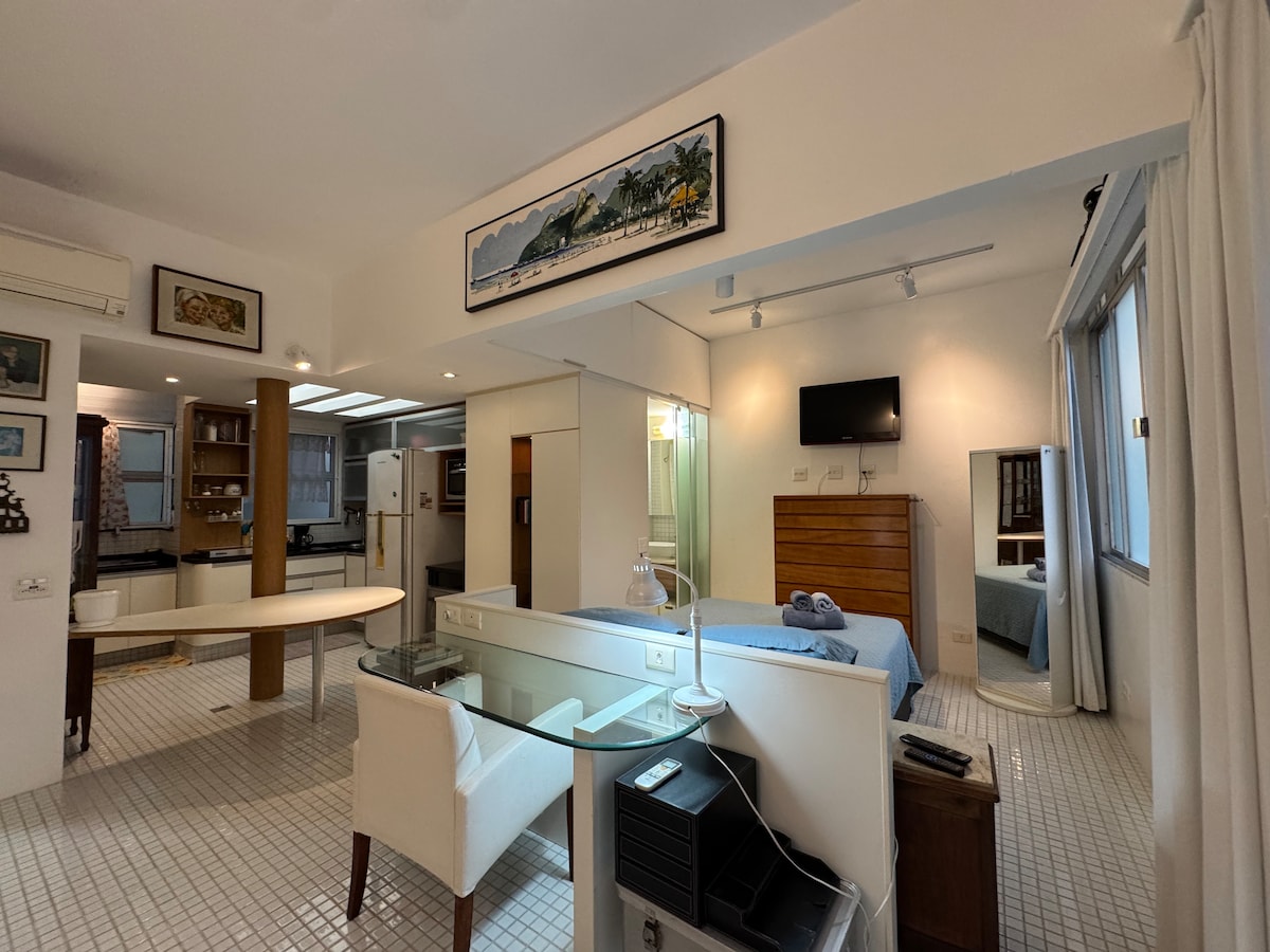 Enjoy a stylish experience at this centrally-located place. Right in the heart of Leblon this gorgeous all integrated studio is perfect for your stay in Rio de Janeiro. 400m from the beach Posto 11. We are on Carlos Góis street - third block down from the ocean. Unbeatable location. Surrounded by a wide range of cool restaurants, 5 minute walk to Rio Design mall, and Shopping Leblon. Cine Leblon on the same street, lots of cafes and pubs to choose from.