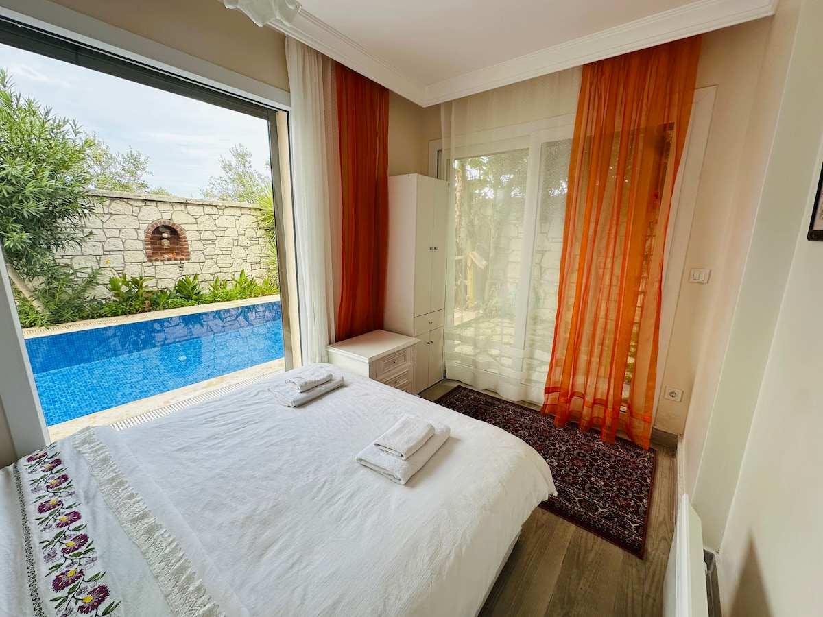 Tiene un área de uso de 150 m2 en un jardín de 800 metros. Tiene una piscina de 4 m x 8 m que se mantiene todo el año. Tiene conexión a Internet de fibra. dentro de nuestra casa, 3 habitaciones, 2 baños, 3 inodoros, 2 chimeneas en el jardín y en el interior, una villa tranquila con limón,olivos y fresas de montaña. las habitaciones tienen calefacción eléctrica,aire acondicionado y cajones. El centro de Alaçatı está a 3 minutos en coche y a 10 minutos a pie. Sistema de tanque y refuerzo para evitar ser afectado por cortes generales de agua.